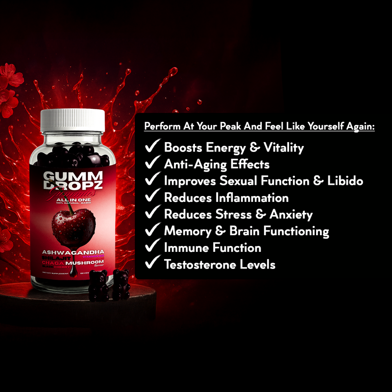 Tired of feeling dull and drained every single day? GUMM DROPZ® transforms your daily routine with black cherry gummies that taste like premium candy, not medicine. Our powerhouse blend of Ashwagandha, Shilajit, and Chaga Mushroom delivers unstoppable energy and that inner glow you crave - one delicious drop at a time.