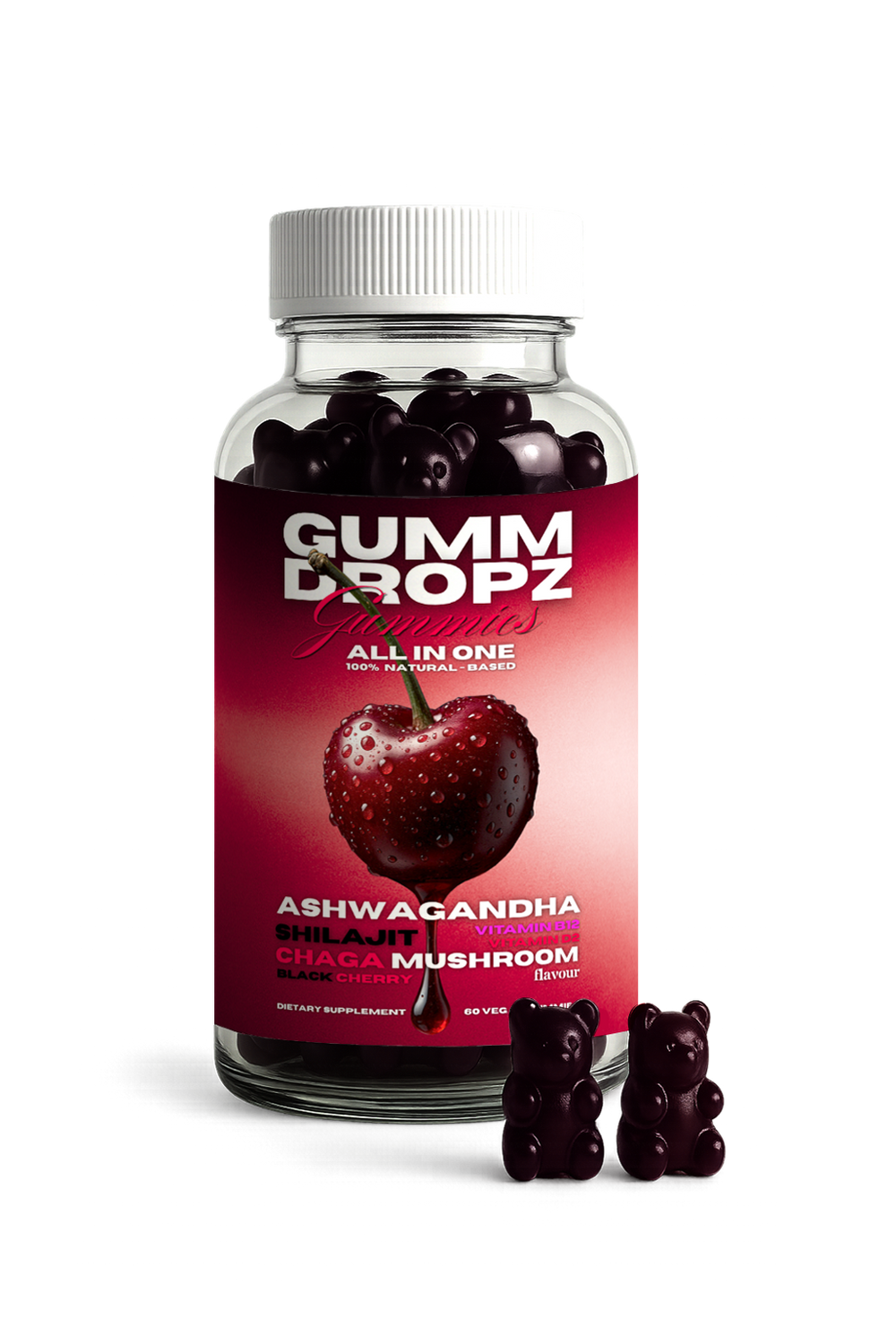 Tired of feeling dull and drained every single day? GUMM DROPZ® transforms your daily routine with black cherry gummies that taste like premium candy, not medicine. Our powerhouse blend of Ashwagandha, Shilajit, and Chaga Mushroom delivers unstoppable energy and that inner glow you crave - one delicious drop at a time.
